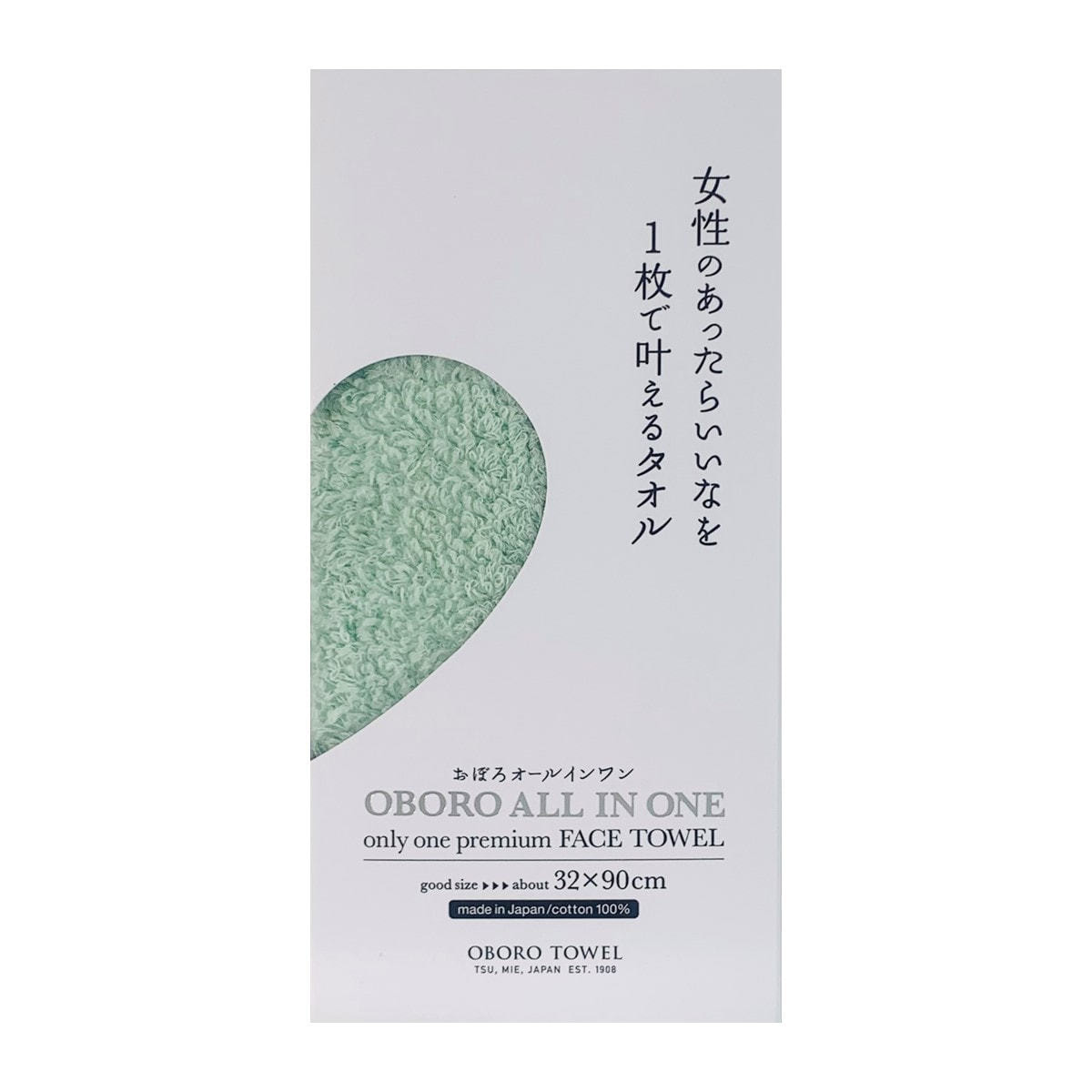 おぼろオールインワン フェイスタオル グリーン(32×90cm)《日本アトピー協会推薦品》